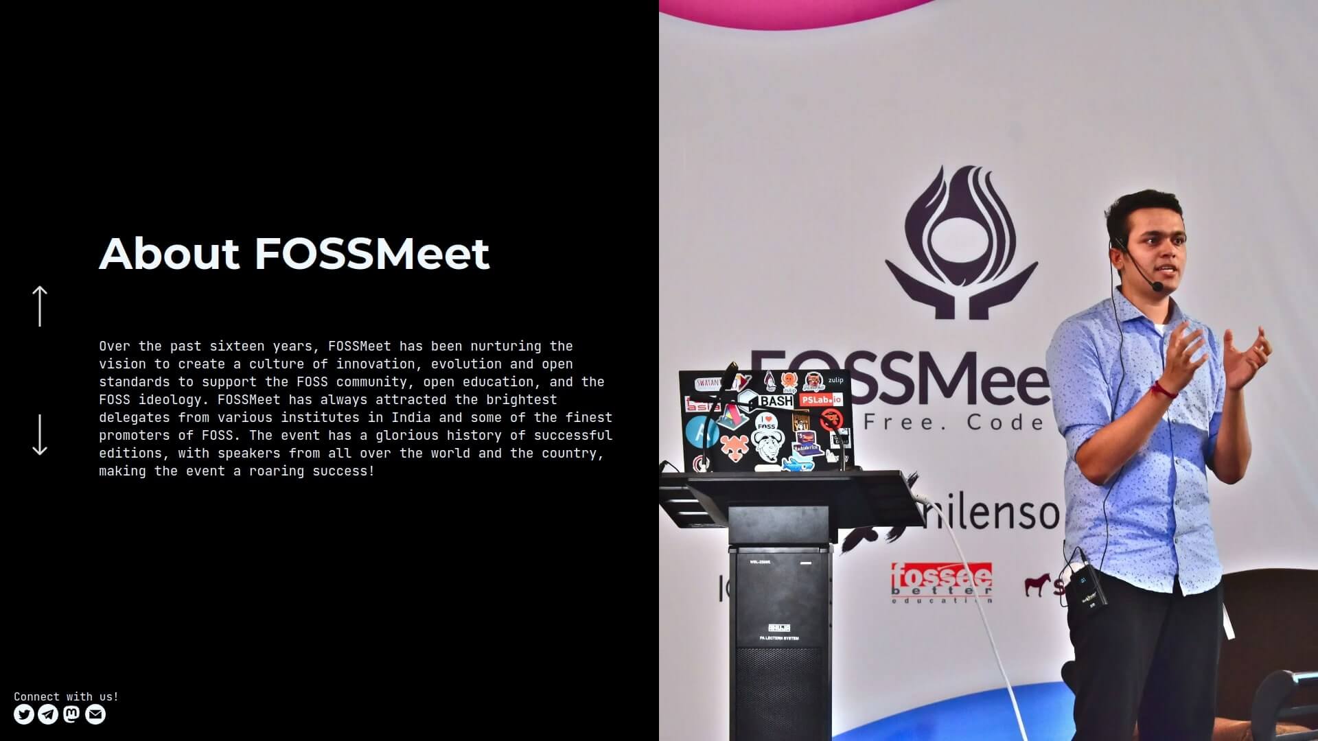 Started in 2005 as FLOSS (Free/Libre Open Source Software) Meet, FOSSMeet will now be back for its 16th year. FOSSMeet has always attracted the brightest delegates from various institutes in India and some of the finest promoters of FOSS.